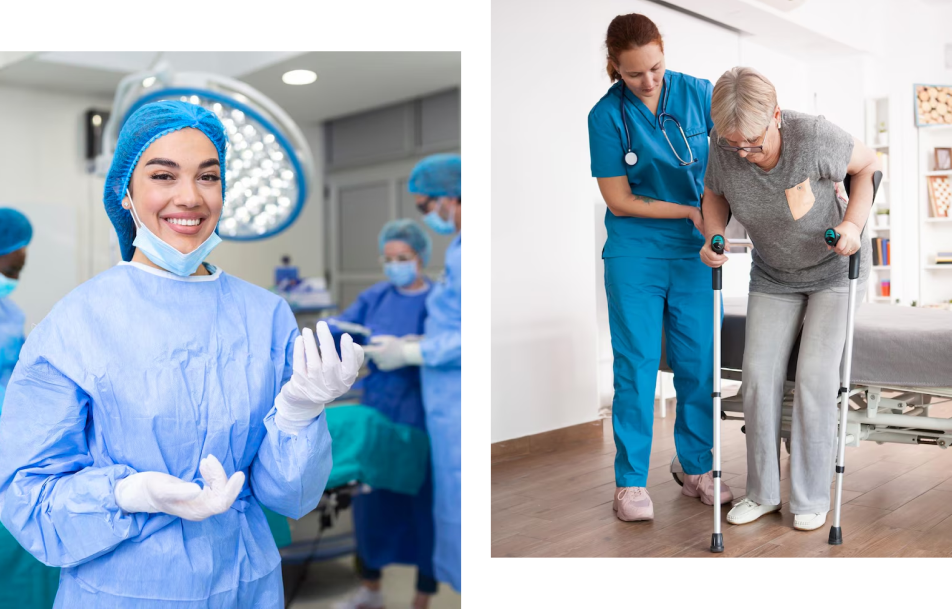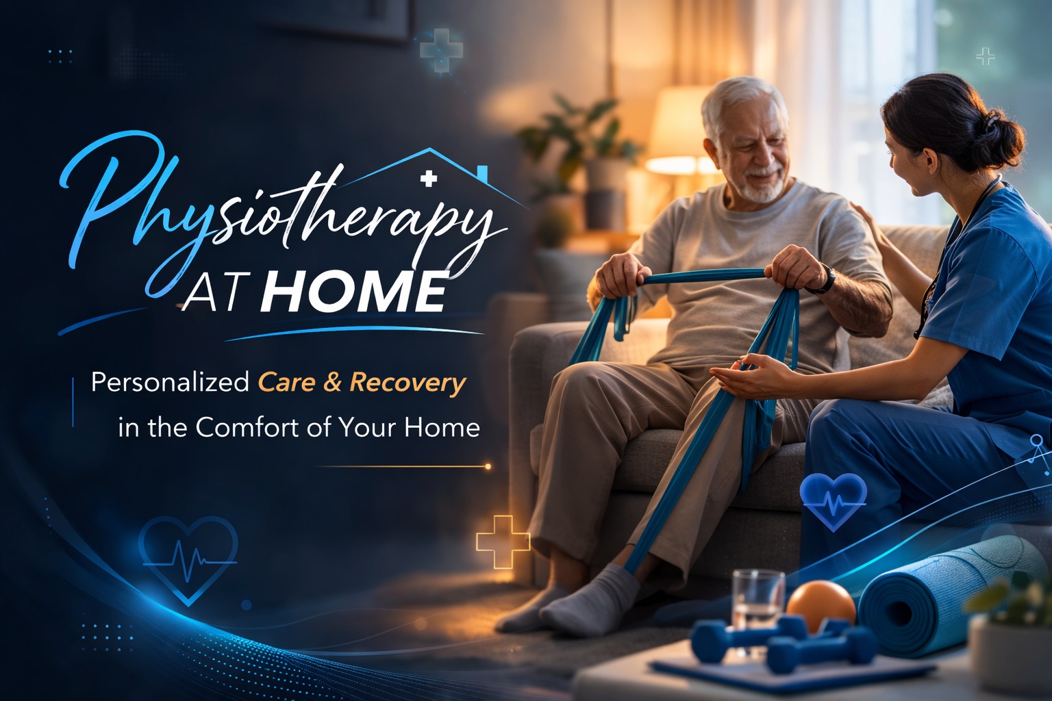 Physiotherapy: We offer expert physiotherapy sessions at home to support recovery, improve mobility, manage pain, and assist in rehabilitation after surgery or injury.